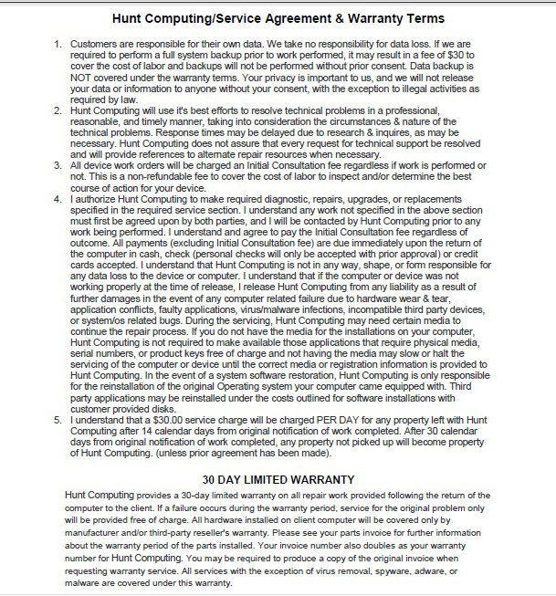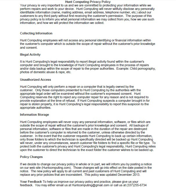 Hunt Computing 201 Talon Road Youngsville, 70592